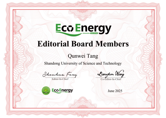 近日,我们唐群委教授受聘担任国际期刊《EcoEnergy》编委。