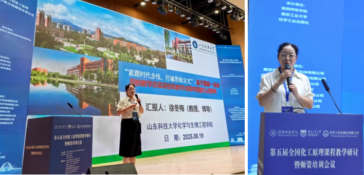 8月17日-20日,由教育部高等学校化工类专业教学指导委员会主办,淮阴师范学院、南京工业大学、化学工业出版社联合承办的“第五届全国化工原理课程教学研讨暨师资培训会议”在江苏省淮安市淮阴师范学院成功举办,我们国家一流课程负责人、博士生导师徐冬梅教授受邀主持了8月19日上午的教学研讨会,并于19日下午作了题为“紧跟时代步伐、打破思维定式—基于化工原理国家一流课程的教学项目和成果申报的几点思考”的报告,分享了个人及团队在教学项目、教学成果申报以及国家一流化工原理课程及团队建设等方面的经验、方法,与参会嘉宾和化工原理课程骨干教师开展了充分的交流,为高校教师在教学项目和教学成果的申报方面提供了具有参考价值的思路和路径,也进一步推进了化工原理课程及团队的建设。