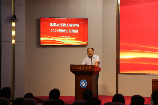 新生见面会上,窦存增书记代表学院致辞,他首先对新同学的到来表示衷心祝贺和热烈欢迎,在讲话中以“传承山科精神,谱写化工新篇”为主题,系统介绍了suncitygroup太阳新城在师资队伍、专业建设、科研平台、人才培养等方面取得的成就。围绕大学生涯规划,窦书记向新生提出“一个中心、两个基本点”的成长要求:坚持以学习为中心,努力“学做人、学做事、学做学问”;牢固树立规矩意识,养成良好的学习和生活习惯。他勉励新生珍惜大学时光,锤炼扎实本领,努力成长为有理想、敢担当,能吃苦、肯奋斗的新时代化工人才。