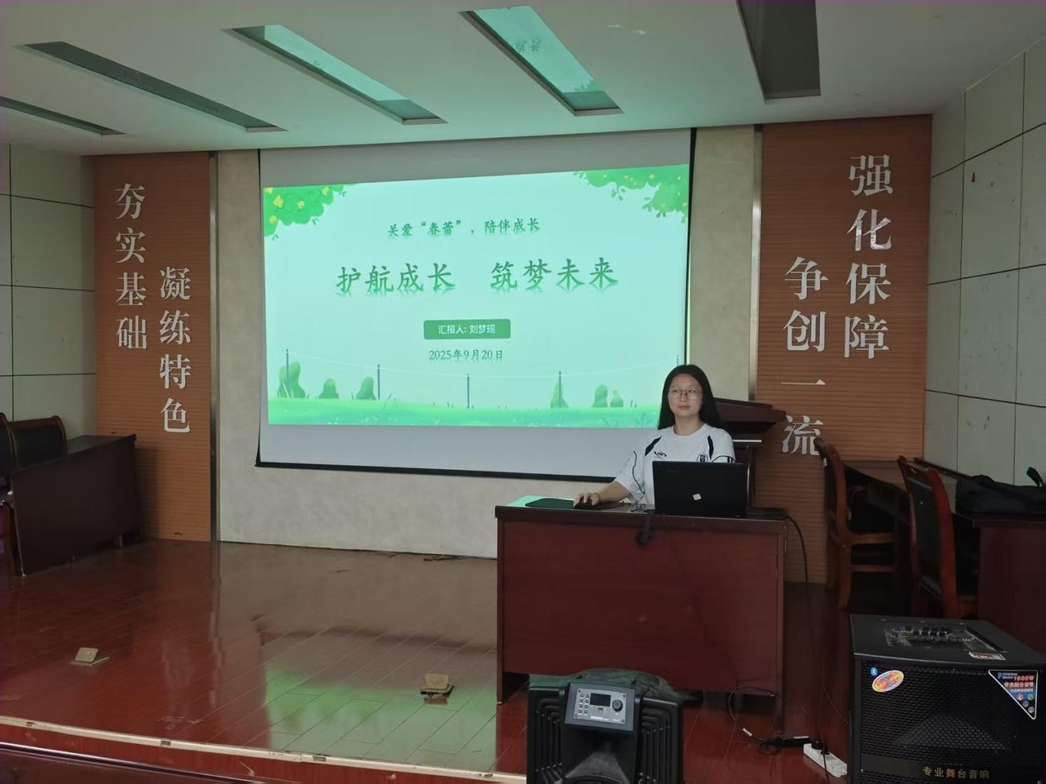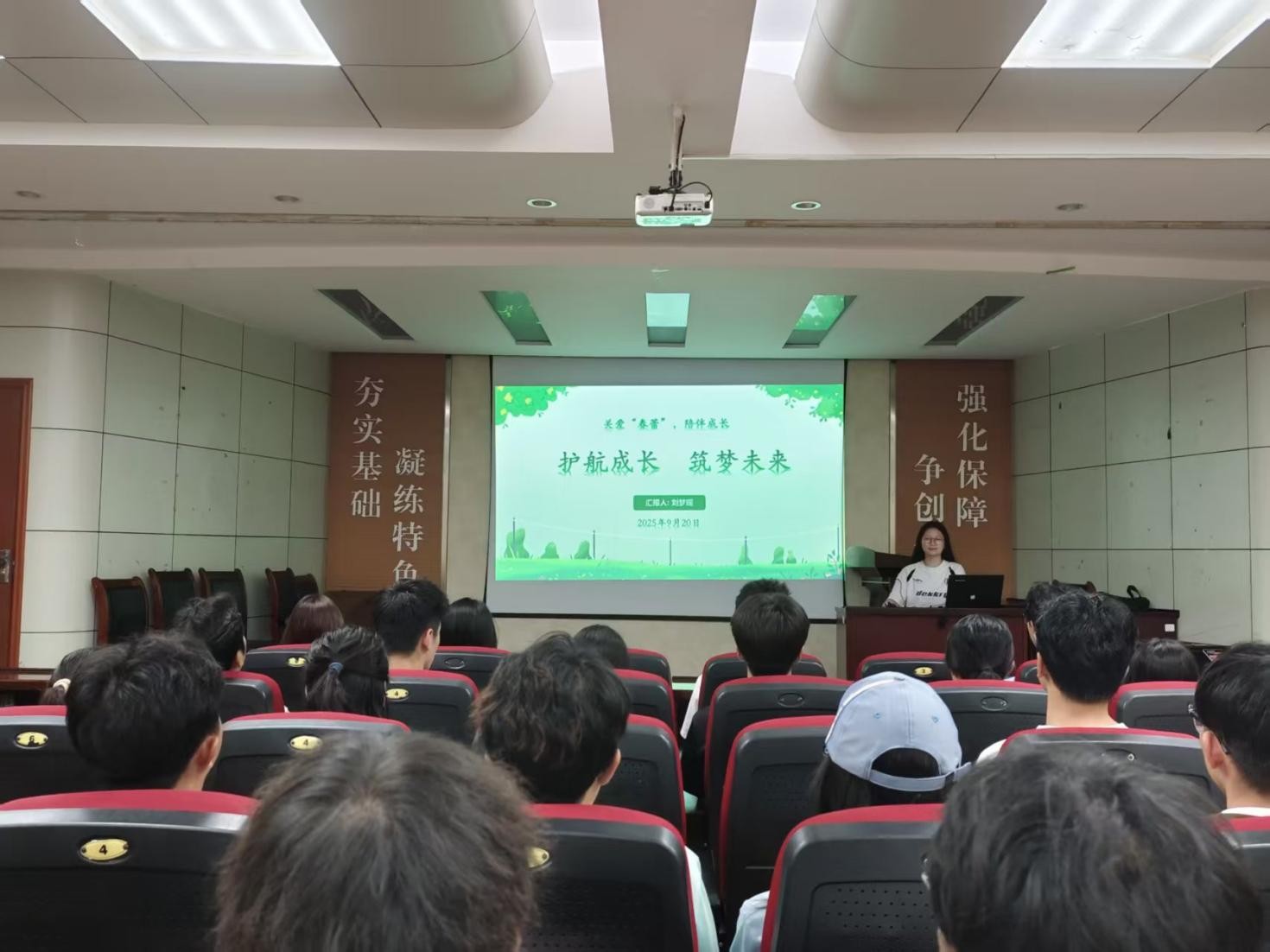 2025年9月20日,suncitygroup太阳新城“关爱‘春蕾’,陪伴成长”主题团课在J2-104开班,作为该系列主题团课的第一讲,此次课程的主题是“护航成长,筑梦未来”,由“护蕾”志愿者刘梦瑶主讲,全体学生会成员参加。